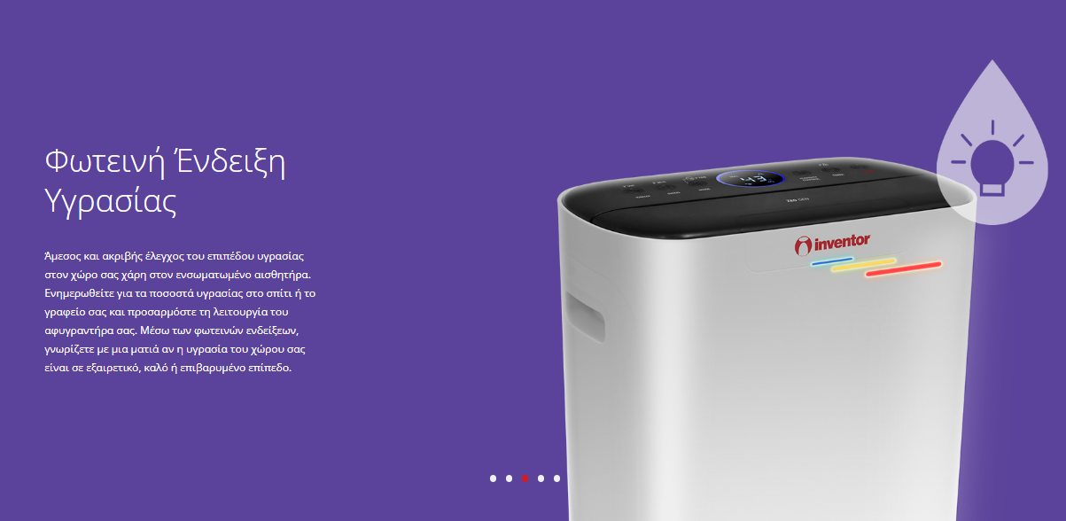 - Άμεσος και ακριβής έλεγχος του επιπέδου υγρασίας στον χώρο σας χάρη στην Φωτεινή Ένδειξη Υγρασίας