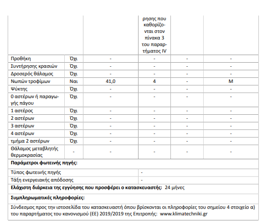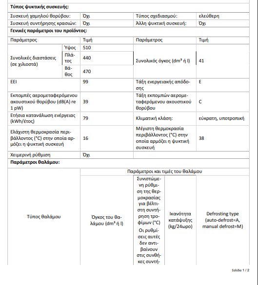 - Ετήσια Κατανάλωση Ενέργειας: 79 kWh