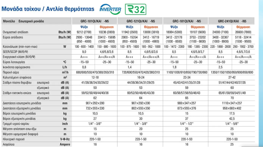 - Εποχιακοί βαθμοί απόδοσης SEER έως Α++ και SCOP A+++