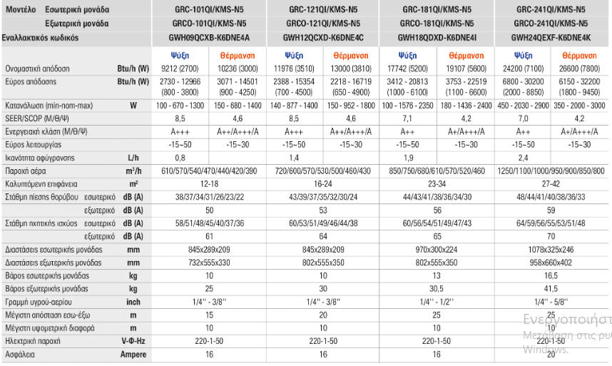 • Εποχιακή βαθμοί απόδοσης SEER έως Α+++ και SCOP Α+++