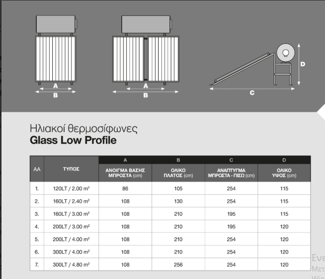 Ηλιακοί Θερμοσίφωνες LOW PROFILE – GLASS