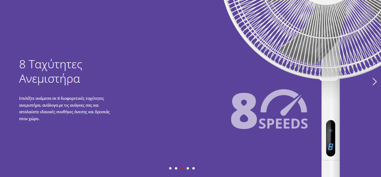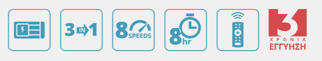 • 8 επίπεδα ταχύτητας ανεμιστήρα για τέλεια δροσιά προσαρμοσμένη στις ανάγκες σας