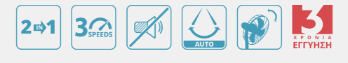 - 3 επίπεδα ταχύτητα ανεμιστήρα για να ρυθμίζετε με ακρίβεια τη δροσιά που σας ταιριάζει