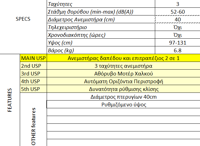 - Ρυθμιζόμενη κλίση κεφαλής ώστε να κατευθύνεται ο αέρας ακριβώς εκεί που τον χρειάζεστε