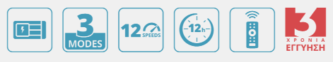 - 12 ταχύτητες ανεμιστήρα για δροσιά, όπως την επιθυμείτε πάντα