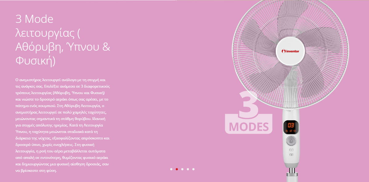 - 3 τρόποι λειτουργίας (Αθόρυβη, Ύπνου, Φυσική) για άψογη αίσθηση δροσιάς με απόλυτη ηρεμία