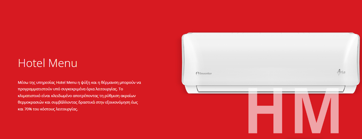- Λειτουργία Hotel Menu για εξοικονόμηση ενέργειας έως και 70%