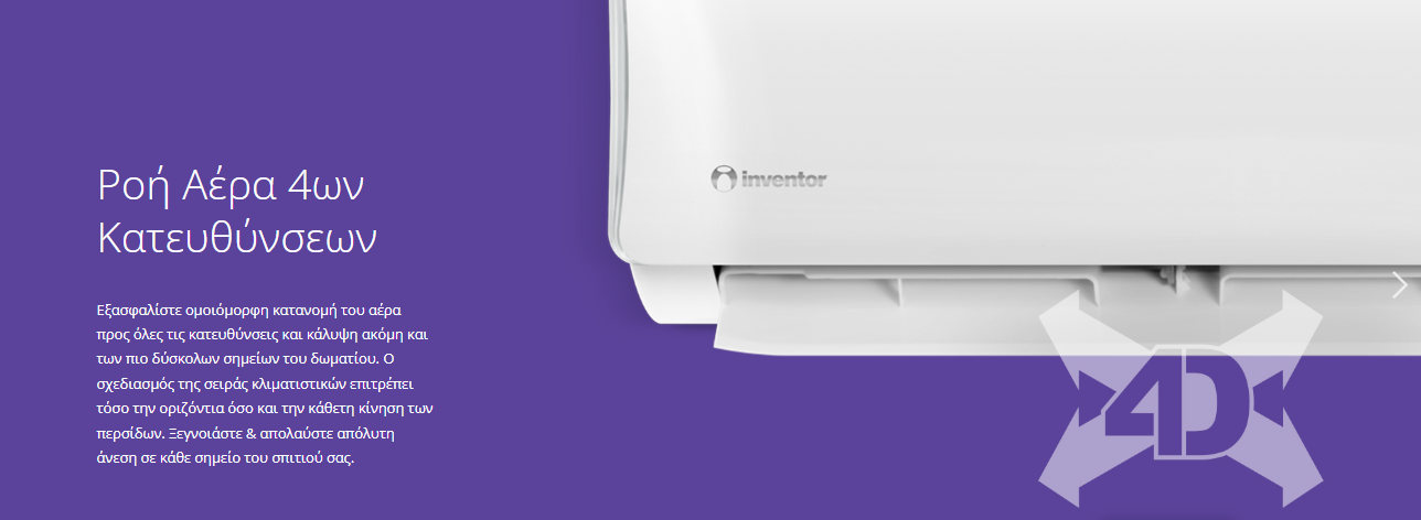 - Ομοιόμορφη κατανομή αέρα και ισορροπημένη θερμοκρασία χάρη στη Ροή Αέρα 4ων Κατευθύνσεων