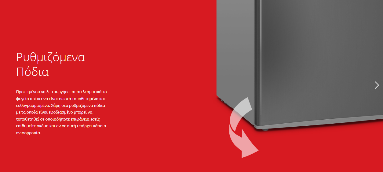 - Ρυθμιζόμενα πόδια για εύκολη προσαρμογή σε κάθε επιφάνεια
