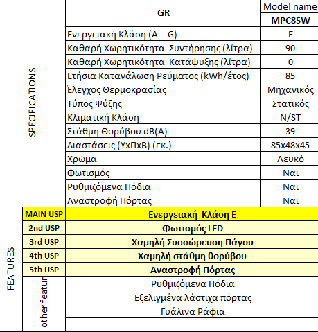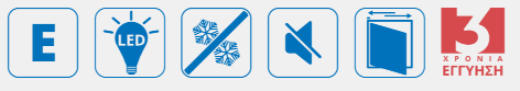 - Χαμηλή κατανάλωση ενέργειας χάρη στην ενεργειακή κλάση Ε