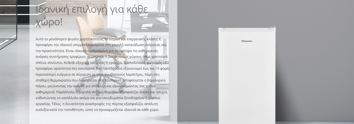 Μονόπορτο ψυγείο χωρητικότητας 90lt και ενεργειακής κλάσης Ε. Εξοικονόμηση ενέργειας και άνεση για κάθε χώρο!