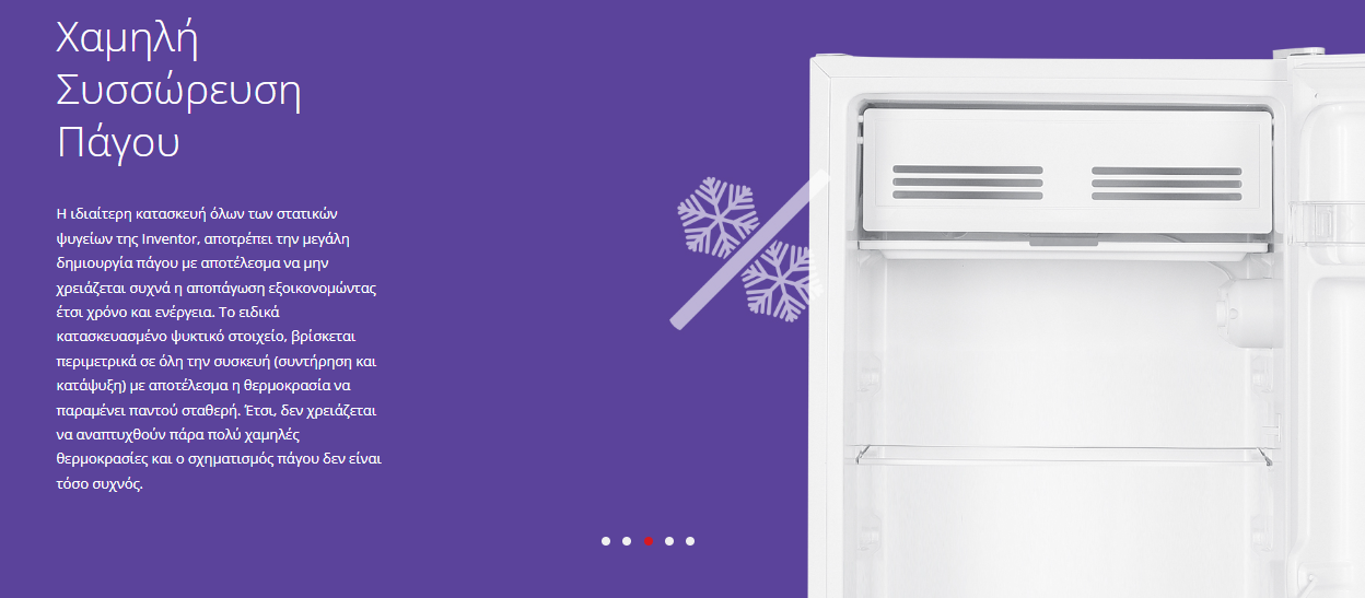 - Χαμηλή συσσώρευση πάγου χάρη στη σταθερή θερμοκρασία που διατηρείται στο εσωτερικό της συσκευής