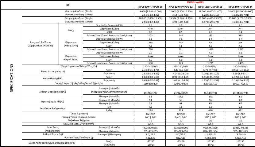 - Μέγιστη εξοικονόμηση ενέργειας χειμώνα-καλοκαίρι χάρη στην ενεργειακή κλάση Α+++ σε ψύξη και θέρμανση