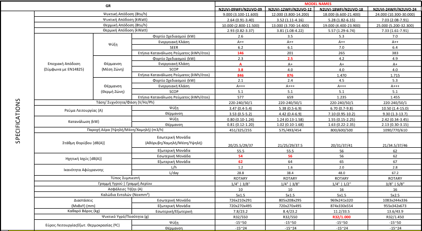 9000BTU ,12000BTU ,18000BTU ,24000BTU |