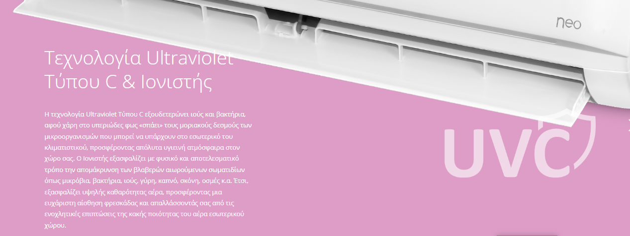 - Καθαρή κι υγιεινή ατμόσφαιρα χάρη στην Τεχνολογία Ultraviolet Τύπου C και τον Ιονιστή