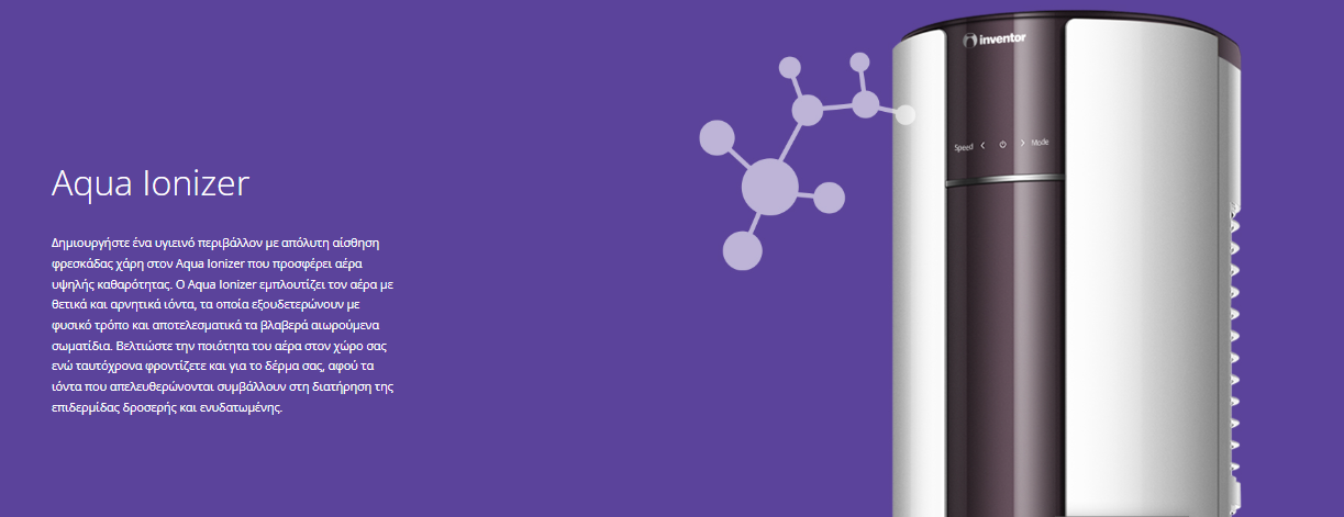 - Aqua Ionizer για καθαρό αέρα και υγιεινό περιβάλλον