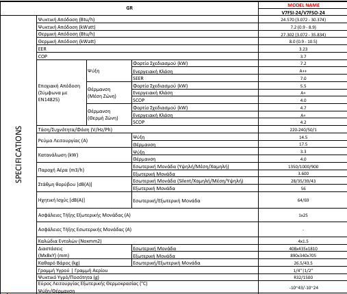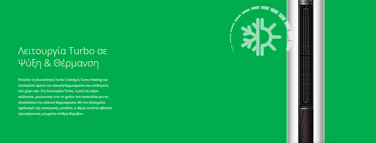 - Λειτουργία Turbo για δυνατές αποδόσεις σε Ψύξη και Θέρμανση