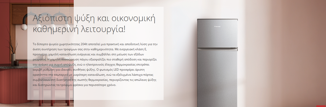 Δίπορτο ψυγείο χωρητικότητας 204lt, με ενεργειακή κλάση E, ηλεκτρονικό έλεγχο θερμοκρασίας & σύγχρονες λειτουργίες για αξιόπιστη και οικονομική καθημερινή χρήση!
