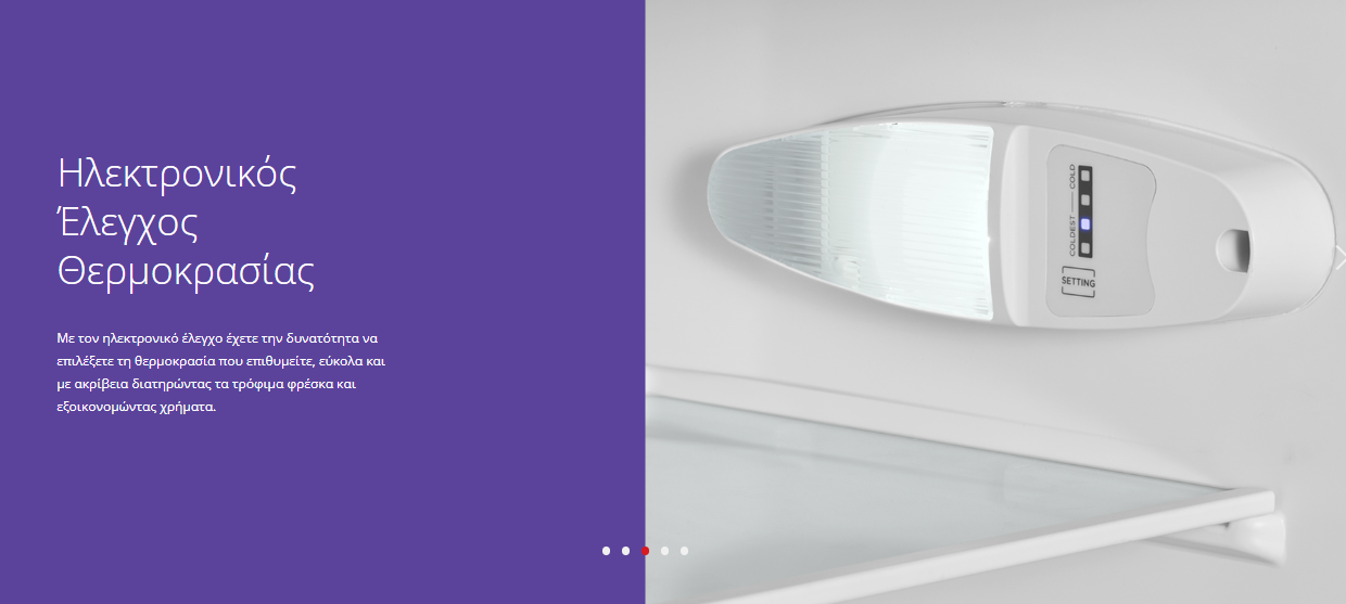 - Ηλεκτρονικός έλεγχος θερμοκρασίας για ακριβή ρύθμιση και ιδανικές συνθήκες συντήρησης των τροφίμων