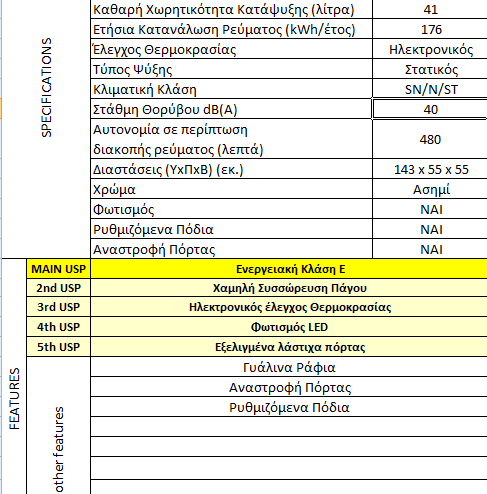 - Εξελιγμένα λάστιχα πόρτας, που περιορίζουν τις απώλειες ψύξης και διατηρούν σταθερή τη θερμοκρασία στο εσωτερικό