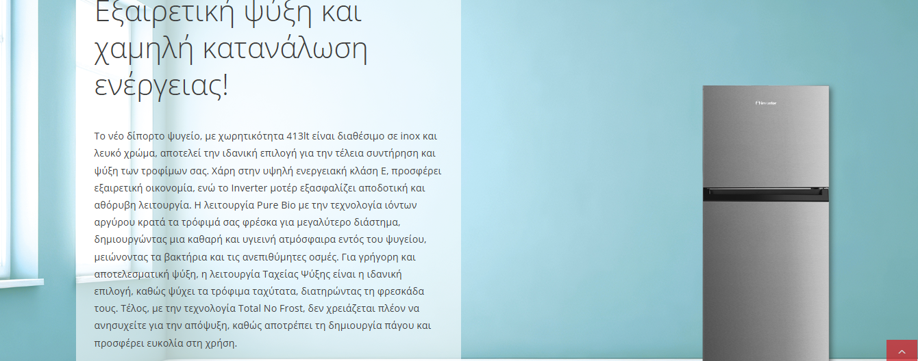 • Inverter Motor για αθόρυβη και αποδοτική λειτουργία, επεκτείνοντας τη διάρκεια ζωής του ψυγείου