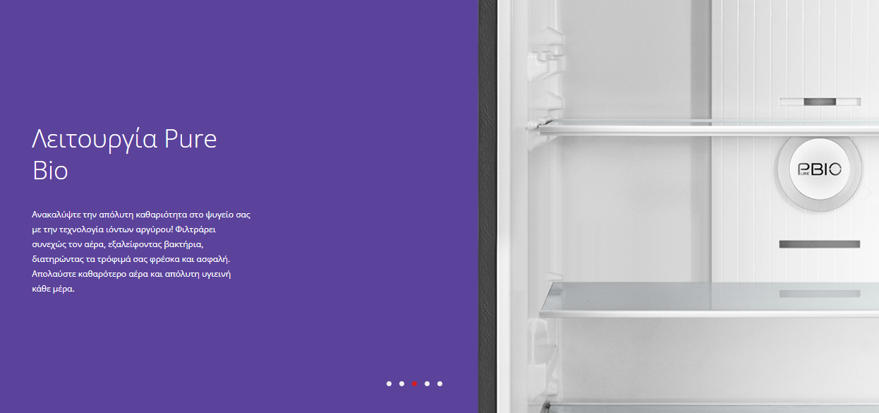 • Λειτουργία Pure Bio για καθαρό και υγιεινό αέρα στο εσωτερικό, διατηρώντας τα τρόφιμα φρέσκα και ασφαλή