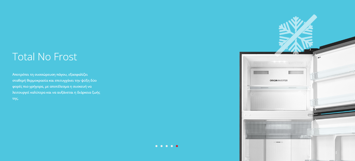 • Τεχνολογία Total No Frost για αποτροπή δημιουργίας πάγου και ομοιόμορφη ψύξη
